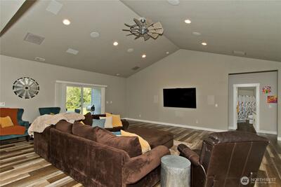 Welcome to this stunning 4-bedroom, 3.5-bath, 3,478 sq ft home set on a peaceful 1.19-acre property in desirable Carbonado. The open-concept layout is ideal for both comfort and entertaining, featuring vaulted ceilings, built-in surround sound, and a spacious living room that flows seamlessly into the chef’s kitchen with quartz countertops, center island, stainless steel appliances, and walk-in pantry. The private primary suite is tucked away on its own wing and features a large walk-in closet with custom shelving and a luxurious 5-piece bath with soaking tub and spa-like tiled shower. The opposite side of the home offers three additional bedrooms, including one with a private bath, plus a versatile office/den. Upstairs bonus space provides endless possibilities for a media room, playroom, home gym, or additional living area. Step outside to the covered patio with surround sound, propane BBQ hookup, and electrical ready for a future spa or sauna—perfect for year-round entertainingâ