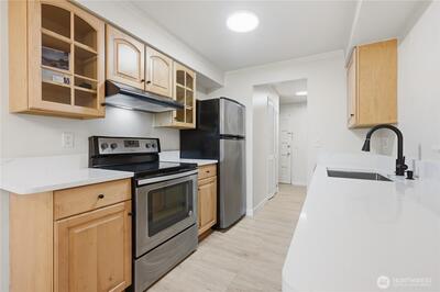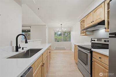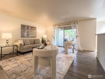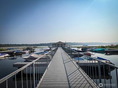 Exceptional value at Villa Marina on Lake Sammamish! Move-in ready, competitively priced, and ready to enjoy, this beautifully updated ground-floor condo offers a rare opportunity to own in one of the Eastside’s most desirable waterfront communities. Residents enjoy private waterfront access, boat launch, over-water cabana, pool, and hot tub—perfect for embracing the lake lifestyle all season long. Inside, the home has been thoughtfully refreshed with Westhighland Oak laminate flooring in a warm oak finish, new quartz countertops, updated sink, vent, and lighting, plus carpet replaced in 2025. The inviting layout features in-unit washer/dryer, a cozy eating nook, dining area, spacious living room with slider to a private deck and outdoor storage, and a primary bedroom with dual closets and direct bath access. Ground-floor convenience and assigned parking #249 right at your door make everyday living easy. Pet-friendly, no rental cap, and FHA/VA approved, this home offers flexibility