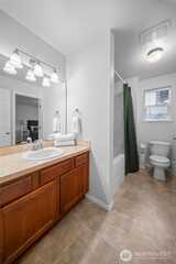Welcome to Sterling Crossing in Tumwater—where comfort, functionality, and thoughtful upgrades come together. This meticulously maintained 3-bedroom home features a highly desirable primary suite on the main level, offering convenience and privacy. The bright, open-concept layout showcases a spacious great room with new LVP flooring that flows seamlessly into the kitchen, complete with a pantry, center island, and adjacent dining area—perfect for everyday living and entertaining. Appliances are new! Upstairs, you’ll find two additional bedrooms connected by a Jack-and-Jill bath, along with a built-in hallway office ideal for remote work or study. Energy-efficient systems, including a high-efficiency furnace and central A/C, provide year-round comfort. Step outside to a beautifully landscaped backyard retreat designed for relaxation and enjoyment—featuring a hot tub, patio, garden space, and storage shed, all fully fenced for added privacy. Both front and back yards are equipped
