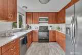 Situated on a generous corner lot, This home features skylight entry, new roof, new windows, new hardi plank siding, new 200% high efficient water heater installed when owners purchased the home in 2019. This Kent home offers rare space, versatility, and exceptional outdoor living. The fully fenced backyard is an urban oasis featuring raised garden beds, mature cherry and plum trees, established grape vines, and a fragrant lavender and rose garden—perfect for gardening, relaxing, or entertaining.A 220 sq ft Covered Trex deck off the main level provides seamless indoor-outdoor living, while a covered patio below creates additional year-round space for guests.Inside, this classic split-level is a ton of natural light via large windows and skylights. The layout places all bedrooms upstairs along with an updated eat-in kitchen and direct deck access. The lower level includes a den and bathroom with excellent potential for a studio apartment or MIL suite, ideal for rental income or flexib