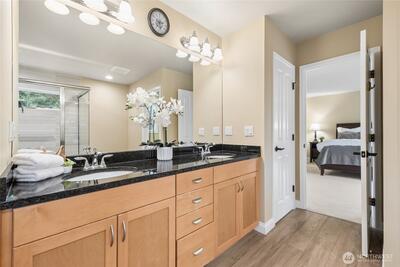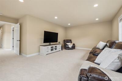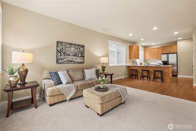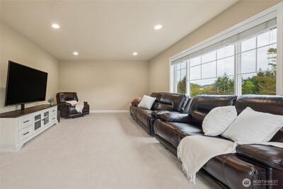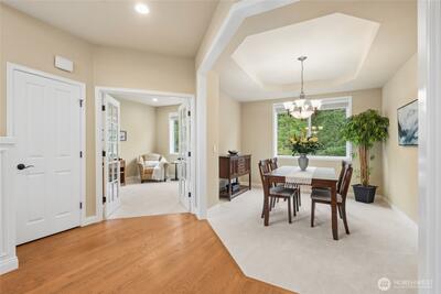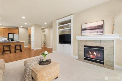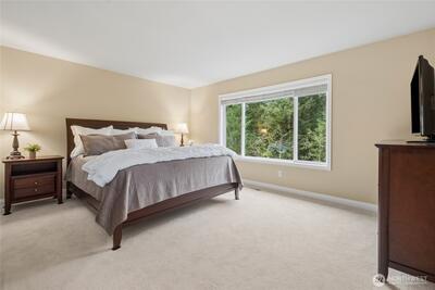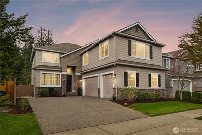 Exquisite Murray Franklyn home in the coveted Crestview community of Snoqualmie Ridge. Ideally sited backing to a lush greenbelt for privacy & directly across from Crestview Park. Beautifully updated throughout, this stunning residence welcomes you with a soaring entry & timeless elegance. The chef’s kitchen features stainless steel appliances, quartz countertops & dining bar. Kitchen is open to the family room with gas fireplace & slider to the patio, creating the perfect space for entertaining. The main level also offers a private office with French doors, formal living & dining rooms, plus a half bath. The spacious primary suite is a luxurious retreat with French doors, spa-inspired bath with custom walk-in shower, dual sinks & an expansive walk-in closet. Upstairs also offers a huge bonus/theater room, three additional bedrooms & a laundry room. 690sf 3-car garage offers space for all your hobbies. Recent updates include 50yr roof (2025), carpet (2024), interior paint (2024), kit