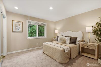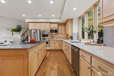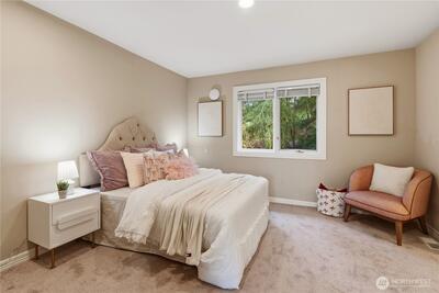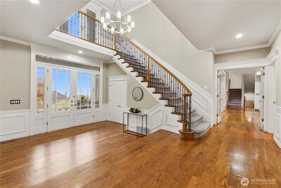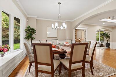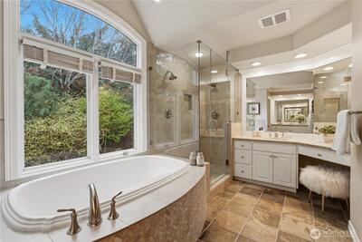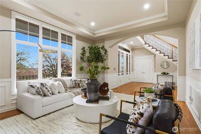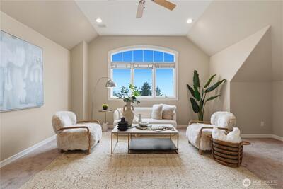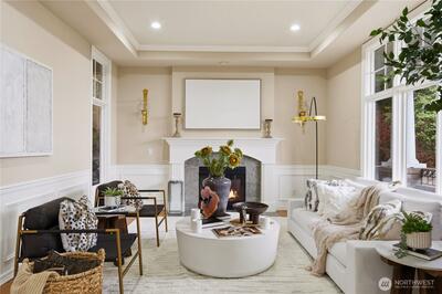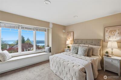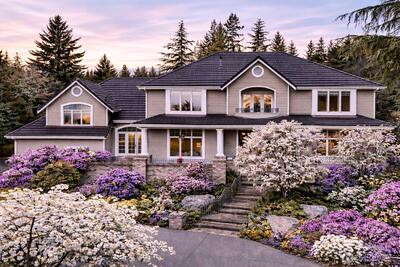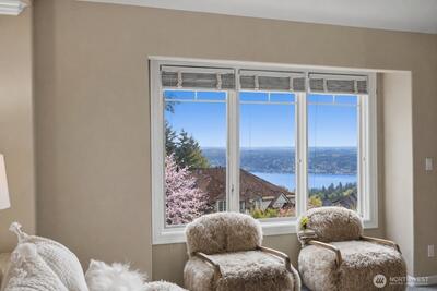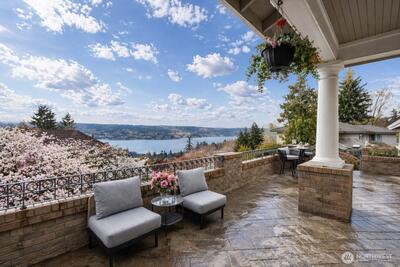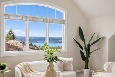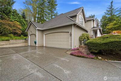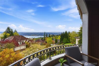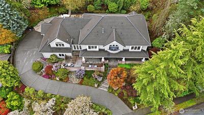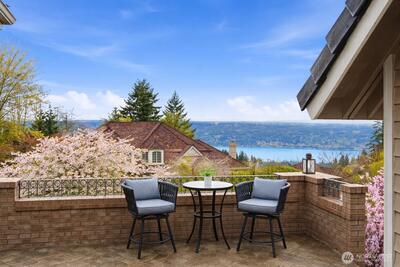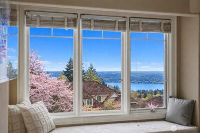 Panoramic views of Lake Sammamish, Mt. Baker & the Cascade Mountains define this exceptional Lakemont Bellevue residence by Street of Dreams builder Design Guild. Elegant and timeless, this home offers soaring ceilings, rich hardwood floors, and walls of windows that fill the space with natural light while showcasing the breathtaking scenery. Dramatic 2-story foyer, formal living and dining rooms, and an expansive family room with fireplace. Chef’s kitchen features slab granite counters, stainless steel appliances, and sunny breakfast nook. Thoughtfully designed with 4 bedrooms, main-floor den that can serve as an additional 5th bedroom, spacious living areas, and versatile bonus room ideal for office, lounge, fitness, or nursery. Upstairs offers 3 bedroom suites, including luxurious primary retreat with stunning lake views and spa-inspired 5-piece bath. Fresh interior paint, new carpet, tile roof, central A/C, and 3-car attached garage add to the hone's appeal. Enjoy the front view