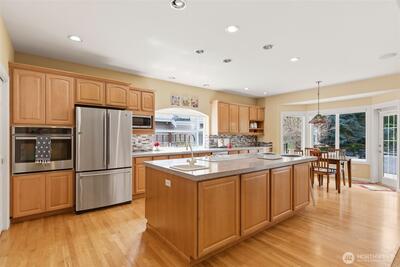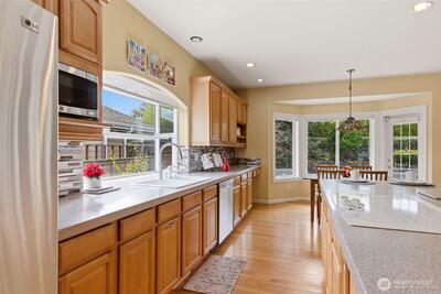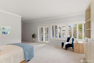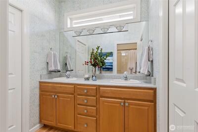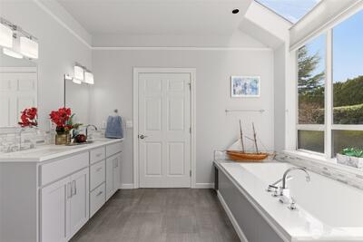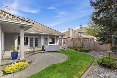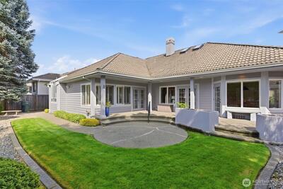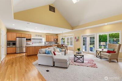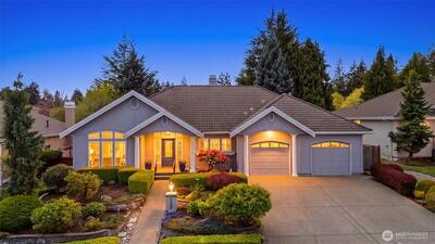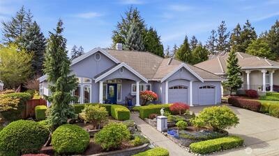 Welcome to effortless Northwest living in this coveted rambler in the heart of University Place. Nestled in the gated community, The Berkshire, quiet streets and sidewalks create a true neighborhood feel. This beautifully maintained home offers exceptional curb appeal with lush, mature, and manicured landscaping. Inside, the open-concept design is elevated by soaring vaulted ceilings and abundant natural light. The heart of the home is the stunning kitchen, featuring an oversized island perfect for gathering, flowing seamlessly into the inviting living area complete with a gas fireplace and custom built-ins. The oversized primary suite is a private retreat, showcasing a fully remodeled 5-piece en-suite designed for comfort and luxury. Plantation shutters add timeless style and privacy. Two additional generous bedrooms, one with gorgeous custom woodwork, are joined by a jack-and-jill bathroom. Thoughtful upgrades to the home include a newer furnace and central AC, ensuring year-round e