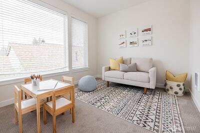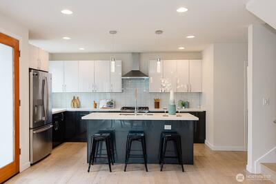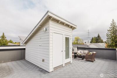 Beautiful modern home boast 5 beds and 3.5 baths with an additional den/office added on the first floor. This home welcomes you with its gourmet kitchen with quartz tops & stainless steel appliances, hardwood on the main floor and stairs, 2 mini splits for heat & cool, luxurious ensuite master bathroom with heated floor & large walk in closet, and an EV charger just outside the front of the home. Rooftop deck with city and mountain views offers a space for outdoor entertainment. Conveniently located minutes from the light rail station with a quick commute to downtown.