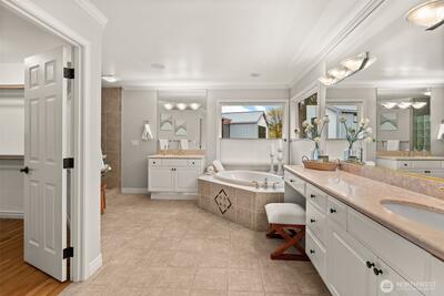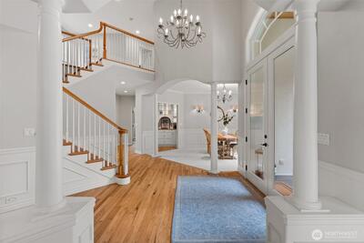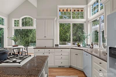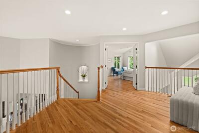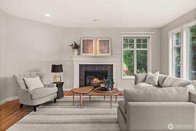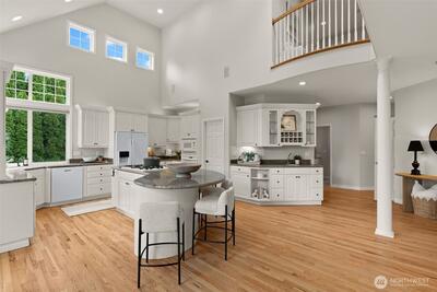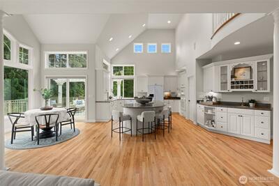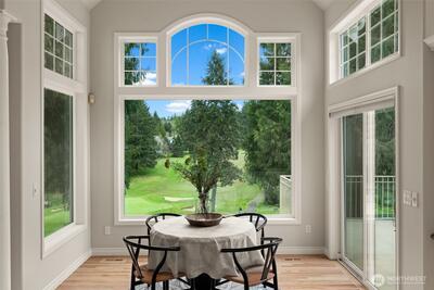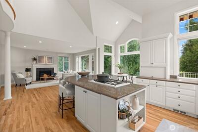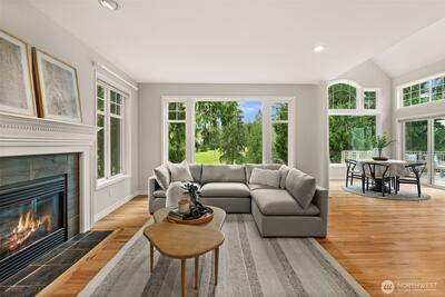 Set behind the gates of Canterwood Golf & Country Club,Gig Harbor’s premier golf course community w/ 24-hour security & a private, serene setting. On the 15th fairway, the home captures peaceful views of the pond and toward the 16th tee. Expansive windows fill the interiors with natural light, w/ every main living space oriented to showcase the scenery. Soaring ceilings and an open-concept design, featuring a chef’s kitchen with breakfast nook and an inviting family room with 18’ ceilings overlooking the course. Freshly refinished hardwood floors and new carpet bring a crisp, updated feel throughout. The primary suite overlooks the fairway & includes radiant heated floors. A bonus/media room upstairs and a spacious finished walkout basement provide flexibility, along with generous storage, including oversized closets and additional space under the home ideal for tools or gardening. Residents enjoy access to the private clubhouse, pool, championship golf course, tennis and pickleb