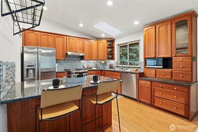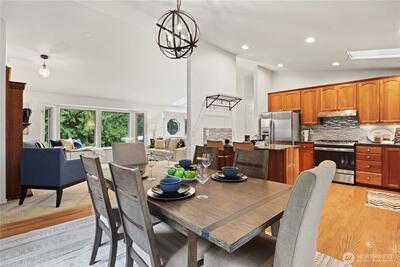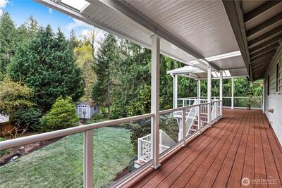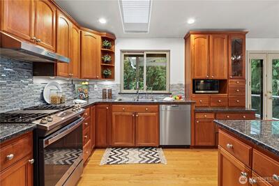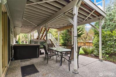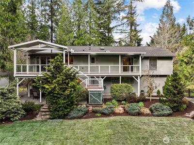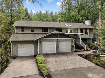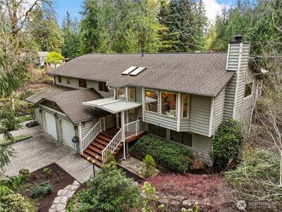 The Best Home in Cottage Lake! Tucked away on 1.75 magical acres, this Woodinville retreat feels like your own private getaway—where mornings begin with coffee on the deck listening to birdsong, afternoons are spent exploring the yard, and evenings end around the firepit under the stars. Designed for gathering and making memories, the expansive covered deck and lower patio create the perfect setting for year-round entertaining. Host summer barbecues, soak in the hot tub on crisp evenings, or invite friends over for s’mores and stories around the campfire. Inside, warmth and comfort fill every space. The beautifully updated kitchen features granite countertops, rich cherry cabinetry, stainless steel appliances, and plenty of room to cook, bake, and gather. Upstairs, the spacious primary suite is a peaceful retreat with its own 3/4 bath, walk-in closet, and private access to the deck overlooking the lush backyard. Two additional oversized bedrooms and a full bath offer room for every