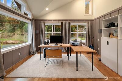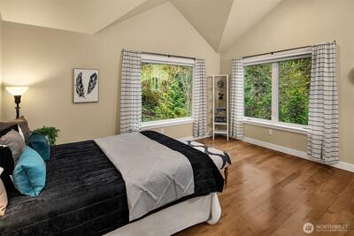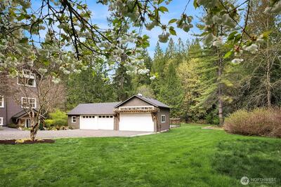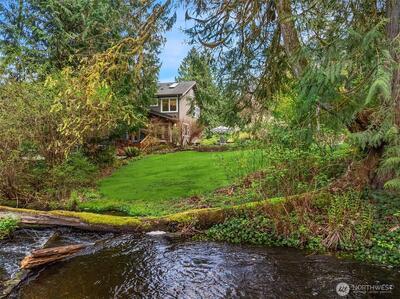 A classic Craftsman set along 200+ feet of serene Bear Creek frontage, offering a rare blend of character, modern upgrades, and a private, park-like setting, just minutes to Woodinville amenities. Vaulted ceilings, clerestory windows, and solid oak hardwood floors fill the home with natural light and warmth. The spacious primary suite provides a peaceful retreat, while a custom 800-bottle wine cellar adds a refined touch. Enjoy year-round comfort with central A/C and a natural gas fireplace. Thoughtful updates include a solar panel system with net metering, upgraded electrical panels, whole-house surge protection, and back up whole house battery. Level 2 EV charger, and energy-efficient LED lighting. A heated 2-car garage and heated workshops offer flexible space for storage, hobbies, or projects. Outdoor living shines with a TimberTech deck overlooking the creek, on-site trails, a vegetable garden, and beautifully maintained grounds. A rare opportunity to own a private waterfront set