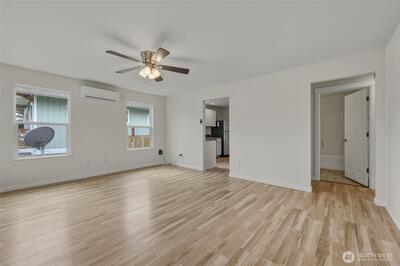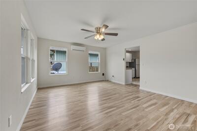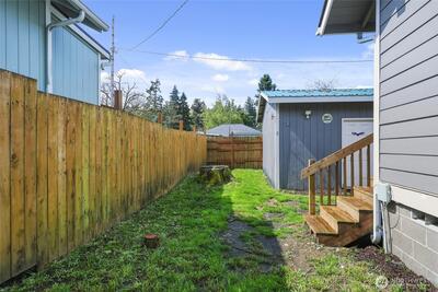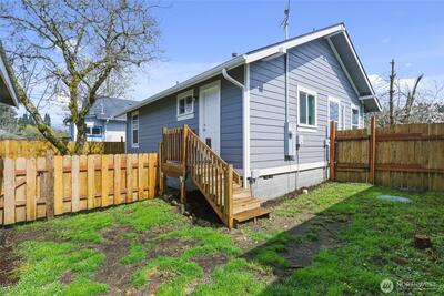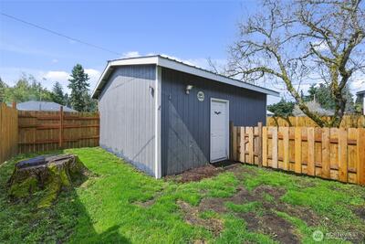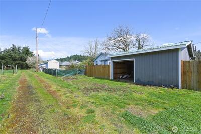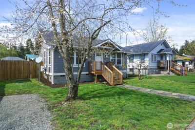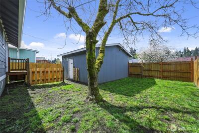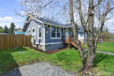 Hard to find affordable Craftsman Home with 400 sq ft garage/shop with RV parking. Refurbished throughout in 2019 with new vinyl windows and new siding. Fully fenced backyard with cherry, plum and walnut trees. Mini split heat pump in living room provides efficient heat and air conditioning. Newer laminate floors. All appliances including washer and dryer stay.