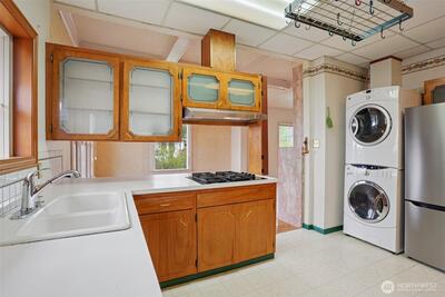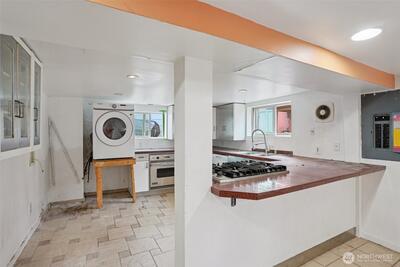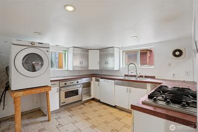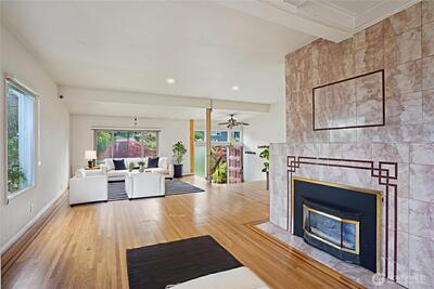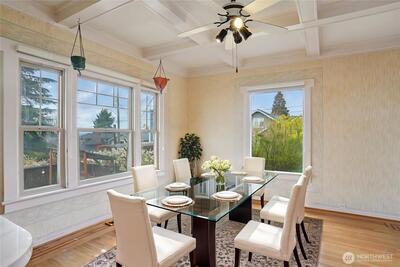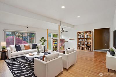 Investor Alert in Phinney Ridge! This classic 1913 home is nestled in one of Seattle’s most sought-after neighborhoods, set on a desirable corner lot, zoned L3, and offering exceptional versatility and opportunity. The main level features 2 bedrooms and 1 bath, while the lower-level ADU includes an additional full kitchen, 2 bedrooms, 1 bath and additional laundry—ideal for rental income or multigenerational living. Original hardwood floors, a marble-surround fireplace, and a spacious deck off the kitchen add warmth and character, perfect for entertaining. Upstairs offers 2 additional bedrooms, an ensuite bath, and a dormer loft with potential for views—adding even more flexibility and value. With approximately 2,920 square feet, the home showcases generous living spaces, timeless architectural charm, and endless potential to update and maximize returns. Large windows fill the home with natural light and capture peaceful, park-like surroundings. Positioned near an arterial rout