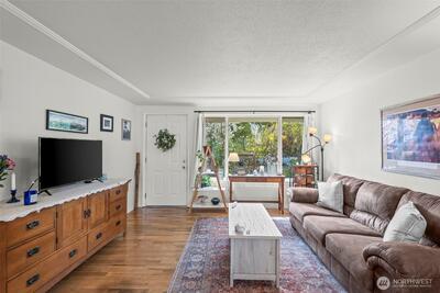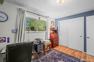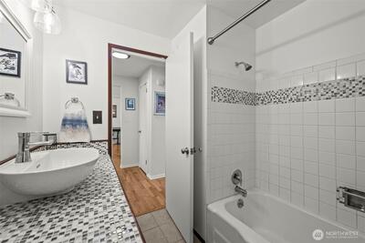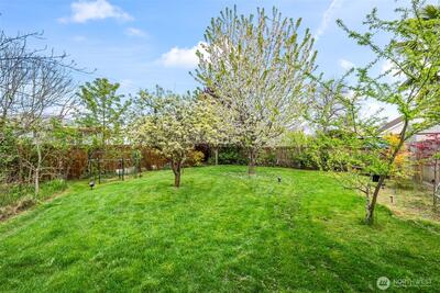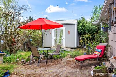 North End Tacoma charmer with thoughtful updates and an incredible yard. Fresh interior paint and original hardwood floors create a warm, inviting feel, while the updated kitchen offers abundant storage, newer appliances, and a light, bright workspace. Updated bathroom, plus a new furnace and A/C for year-round comfort. Bonus room on upper level can be used as office/studio/4th bedroom. Step outside to a true gardener’s paradise. Expansive yard with mature landscaping, blooming apple, cherry, and pear trees, established raspberry bushes, and a large area ready for your vegetable garden. Plenty of shade for summer days and space to relax, play, or entertain. Detached shed provides convenient storage for tools and equipment. Enjoy beautiful sunset views from the living room and bedrooms, along with peaceful surroundings filled with birds and natural beauty. Located in a highly walkable North End neighborhood with flat streets, sidewalks, and a strong sense of community. Just minutes to