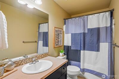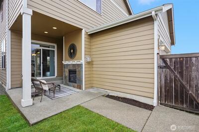 Experience the perfect blend of style and functionality in this stunning Silver Creek residence. The heart of the home is an expansive, open-concept Great Room that flows into a chef-inspired kitchen featuring hand-scraped hardwoods, elegant granite countertops, and premium stainless steel appliances. Perfectly tailored for modern living, the layout offers a seamless transition to your private outdoor oasis—a beautiful, covered living area with its own gas fireplace. This rare feature makes you the ultimate host, whether enjoying summer BBQs or cozying up during crisp Washington evenings. Retreat upstairs to a primary suite sanctuary, complete with an elegant five-piece bath and a deep soaking tub designed for relaxation. Two additional bedrooms and a convenient utility room complete the upper level. Every detail has been meticulously maintained, from the professionally landscaped and fully fenced backyard to the attached two-car garage. Nestled in the acclaimed Puyallup School Distr