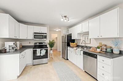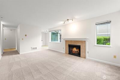 Enjoy the best of Issaquah living in this light-filled, beautifully remodeled 1-bedroom condo in Arrington Place, just moments from Downtown Issaquah. The open-concept layout features a spacious kitchen and dining area that flows seamlessly into a bright living room with a cozy wood-burning fireplace and patio—perfect for relaxing or entertaining. Fresh interior paint, brand-new carpet, and newer washer, dryer, and water heater offer modern comfort and peace of mind. The generous bedroom, full bath, and versatile in-unit storage space add to the home’s functionality, while covered parking and additional on-site storage provide everyday convenience. Step outside to enjoy Front Street’s charming shops, dining, and performances at Village Theatre, along with easy access to hiking trails and local events like Issaquah Salmon Days. Community amenities include a clubhouse, fitness room, and hot tub, all within a well-managed HOA with no rental cap and no history of special assessments,
