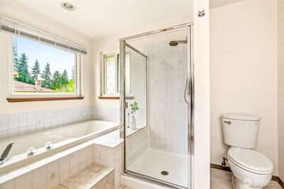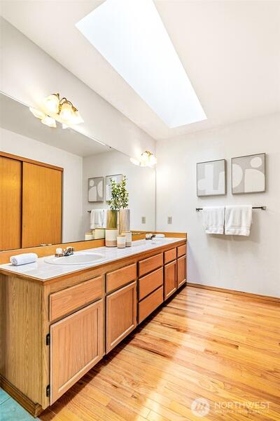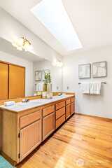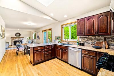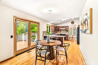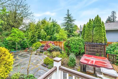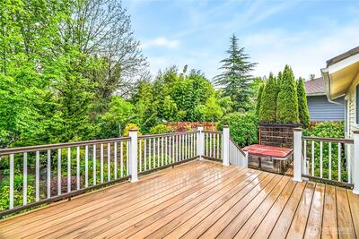 Elegant two-story home nestled on a quiet cul-de-sac. This warm and inviting residence features an open floor plan, high ceilings, and modern lighting fixtures. Gourmet kitchen offers cherry cabinets, granite countertops, and top tier appliances. The main level also presents an office/bedroom. Upstairs, you will find the oversized primary suite with two additional bedrooms. Expansive windows and skylights fill the home with natural light. French doors open to a level backyard with a generous deck, water feature, and hot tub - perfect for unwinding and entertaining. Tranquility and privacy await in this oasis. Fresh interior paint. Top Northshore schools. Minutes to parks, trails, and freeways. Must see!