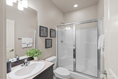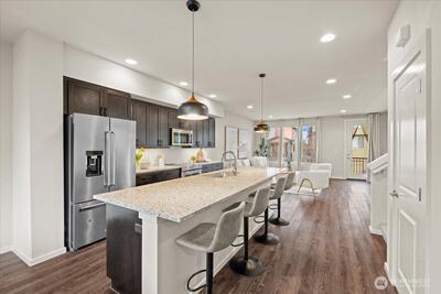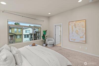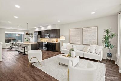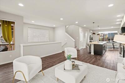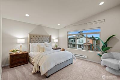 Experience refined modern living in this light-filled corner-lot residence where thoughtful design meets everyday comfort. Positioned to capture abundant natural light, this home offers a seamless blend of style, functionality, and access to West Seattle amenities and community parks. The open-concept main level invites connection, featuring a spacious kitchen with quartz countertops, stainless steel appliances, a large island, and a walk-in pantry, all flowing effortlessly into the dining and living areas. As you enter, vaulted ceilings above the upper level create an open, airy feel that enhances the sense of space. A mini-split system provides year-round comfort, and the home has been pre-inspected for added transparency. Upstairs, three bedrooms include a primary suite with a double vanity, a walk-in closet, and a well-designed bath, along with conveniently located laundry. The lower level offers a private guest suite with a bathroom, suitable for multigenerational living,