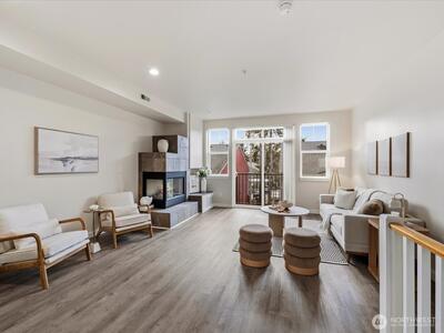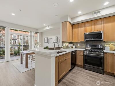 Beautifully updated townhome in a gated community with an unbeatable location! This light-filled home offers 3 bedrooms, 2.25 baths, and a spacious tandem 2-car garage with additional W/D hookups or electric car charging outlet. The brand-new kitchen features quartz countertops, stainless steel appliances, and recessed LED lighting unique to this unit. New waterproof vinyl plank flooring and fresh interior paint enhance the bright living spaces, highlighted by vaulted ceilings, large windows, and skylights. The HOA is well maintained with lower dues at $539.00 which includes water and sewer. Enjoy breakfast in the sunlit dining area or relax by the gas fireplace. Step out onto the sunny balcony for added outdoor space. Walk to T&T, Target, Factoria Mall, and nearby restaurants, with quick access to I-405, I-90, and transit routes (203, 240) connecting to Bellevue, Kirkland, and the greater Eastside. Close to the 42-mile East Lake Sammamish Trail extending throughout the Lake Washington