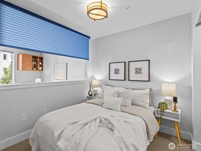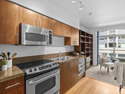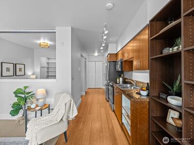 As they say in real estate, it's all about location, location, location, and this adorable Noma condo personifies the heart of Downtown Ballard. Across the street from QFC and a block off of NW Market St, you're at the epicenter of the one of the most iconic and sought after neighborhoods in Seattle. This bright and airy open concept 1 bedroom condo is efficiently designed. It features a walk-in closet, full-sized washer and dryer, fresh paint, new fridge, and a cozy patio for those dreamy summer nights. The updated bathroom is surprisingly roomy, and there are built-ins throughout the home to maximize your storage capabilities. A condo building can be an incredible asset that extends your living space, and this community boasts fantastic amenities to really make the whole property feel like home. Whether you're hosting in the lounge, taking a call in the conference room, or admiring breathtaking sunsets on the rooftop deck, this home has it all. The cherry on the cake is secure gara