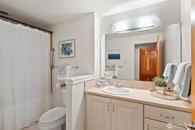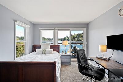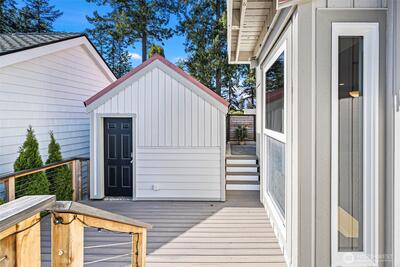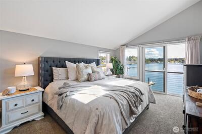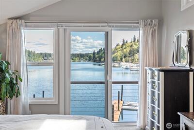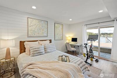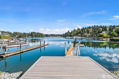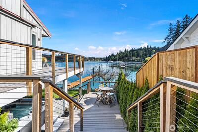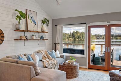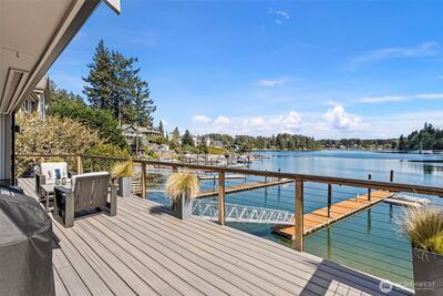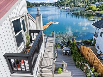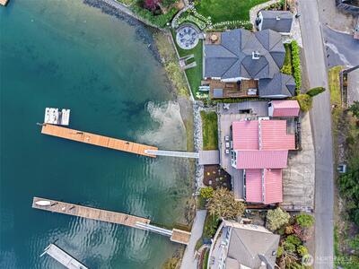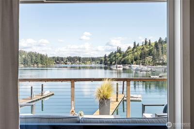 295 Shorewood Court is where Fox Island waterfront living feels effortless. Set along Echo Bay, tucked quietly off the main road, this multi-level home captures unobstructed water and Mount Rainier views from every room, and every level. The presence of the water is felt throughout, and every level opens to the outdoors. Wake up to the glassy waters of Echo Bay and start your day from the water. Swim, kayak, or boat from your own backyard. Great room flows seamlessly through double doors extending your living to the outdoors onto the new Trex multi-level decks and cable railing. A bedroom and bath on every level. Primary Suite is private and occupies its own level with an open loft, balcony, and abundant storage. Renovated lower level features a full kitchen, secondary living, and flex space/3rd bedroom — ideal for extended guests. Concrete patio just a few steps to the private dock. New 73' engineered rock bulkhead - professionally installed & permitted. Private dock with wat