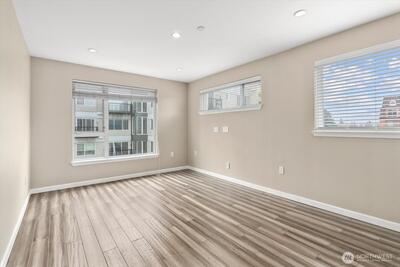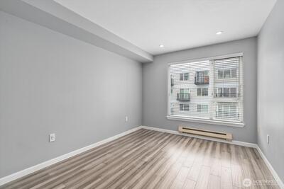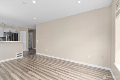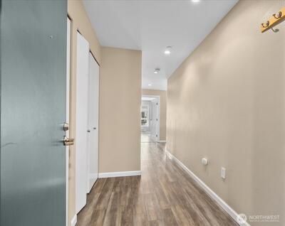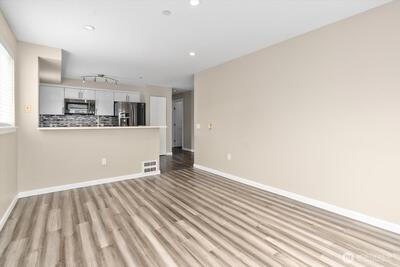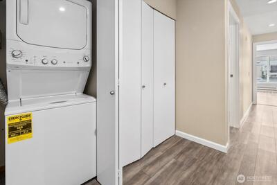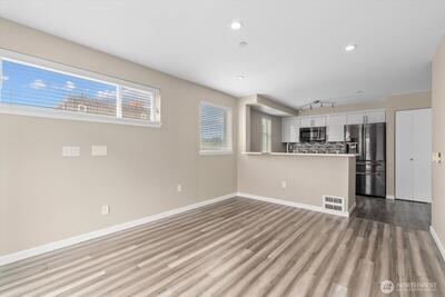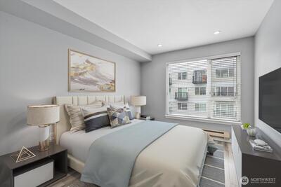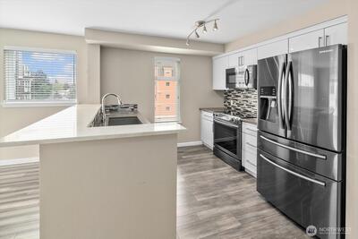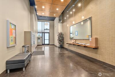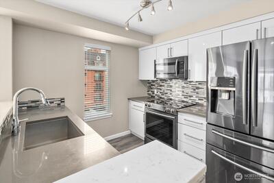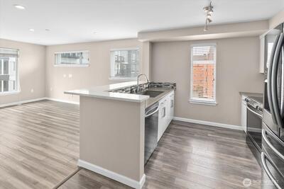 Bright, corner condo at The Luminaire --Steps from restaurants , breweries , parks and the farmers market. Very nice airy, light-filled living space ,new flooring ,and a sleek kitchen with stainless appliances and breakfast bar, Spacious walk-in closet , in-unit washer/dryer, secure lobby, and TWO assigned garage spaces .HOA covers water, sewer, garbage and central hot water , no rental cap ! Walk score of 91. Quick access to I-5, Lake City Way/Bothell Way access for easy commute .