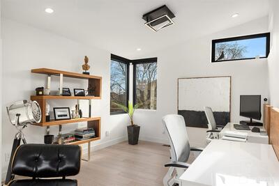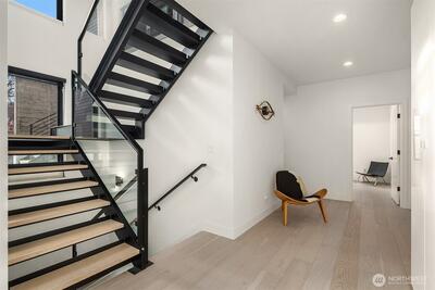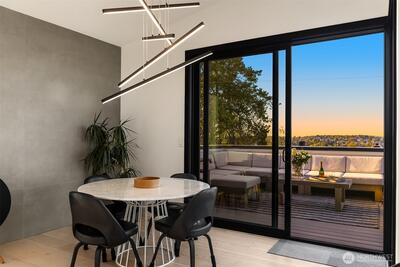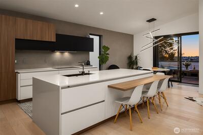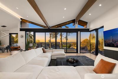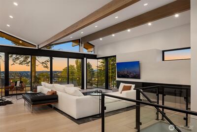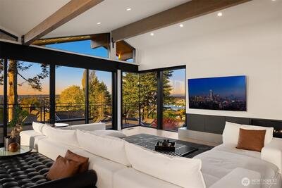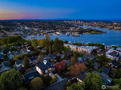 This contemporary gem was built from the ground up in 2019 and showcases a reverse floor plan that captures sweeping NE-facing views of both Lake Union & Lake Washington, Gasworks Park, Ballard, Kirkland, Mt. Baker & the Cascade mountains. Unparalleled privacy and solitude. The great room features floor-to-ceiling windows and offers an open-concept space boasting a chef’s kitchen and spacious living area that opens to a balcony & view deck. The bedroom level offers 4 serene bedrooms, including a primary suite with a lavish bath. The lower level, versatile for entertainment or as a guest suite, opens to a fully enclosed backyard. Two attached single-car garages as well as 3 additional off-street parking spaces.