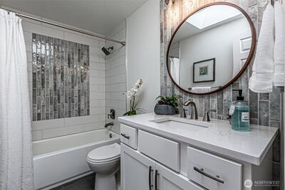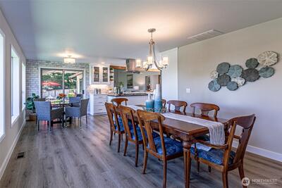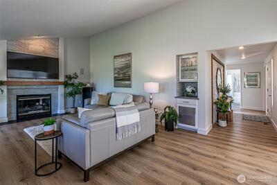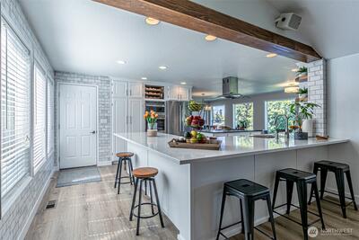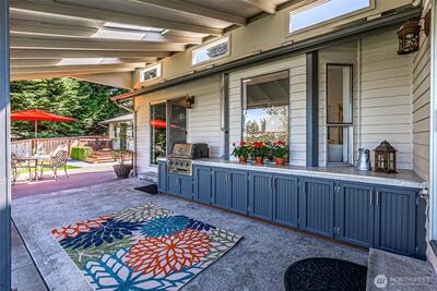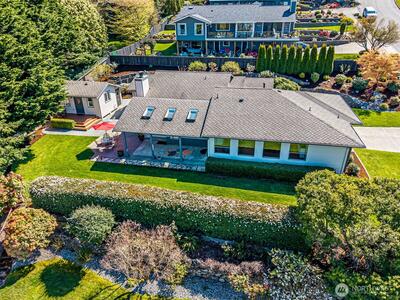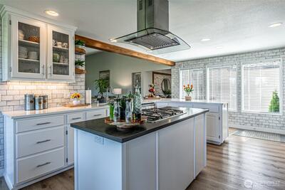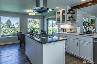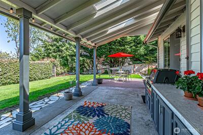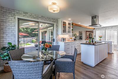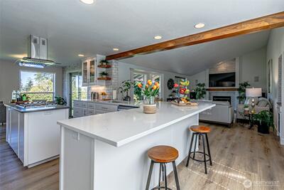 Absolutely Stunning, fully remodeled Dash Point Estates Rambler, blends style, comfort, & modern elegance. Tastefully designed w/an open-concept layout, this home showcases custom finishes thru-out w/no detail overlooked. The Chef's Kitchen features quartz countertops, natural marble walls, & stainless steel appliances w/a cozy breakfast nook, plus a formal dining area that comfortably seats eight, all flowing seamlessly into the inviting great room, pre-wired for a full home theater system - perfect for everyday living & entertaining. The luxurious king bed sized primary suite offers a spa-inspired bath w/a 4x6 custom walk-in shower, private water closet, & extended quartz vanity w/full wall mirrors, while secondary bedrooms are generously sized to accommodate queen size beds. Set on nearly 1/4 acre, the professionally landscaped yard provides privacy & a peek-a-boo Sound view. Relax or entertain year-round under the expansive covered patio w/skylights, built-in cabinetry & a gas BBQ.