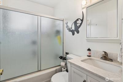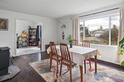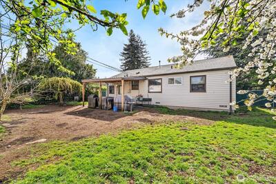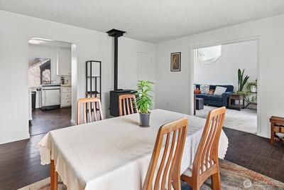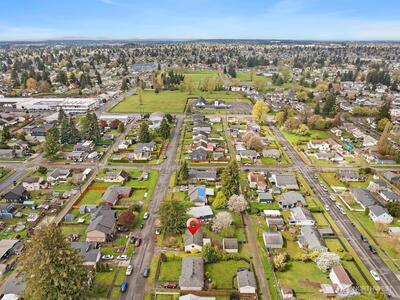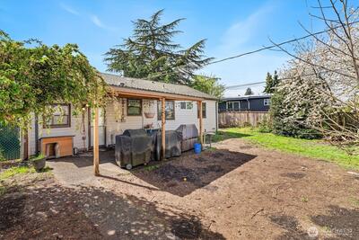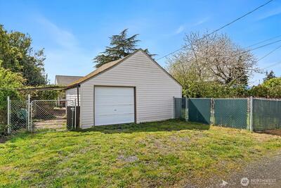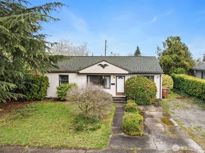 Charming Tacoma home with serious potential, whether you're buying your first home or thinking long-term investment. Situated on a spacious lot with alley access and connected to sewer, this property opens the door for a future DADU. Step inside to a functional layout with two light-filled living spaces, one with vaulted ceilings and large picture windows. Neutral finishes throughout make it easy to move right in and add your own style over time. Cozy up by the pellet fireplace in the winter, then enjoy summer nights under the covered patio overlooking the fully fenced backyard; perfect for entertaining, pets, or gardening. The detached 2-car garage with workshop space and alley access offers flexibility for hobbies, parking, or future development. Conveniently located near shopping, schools, and I-5 for an easy commute.