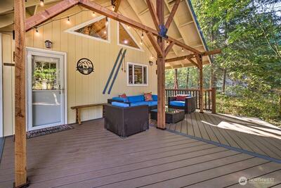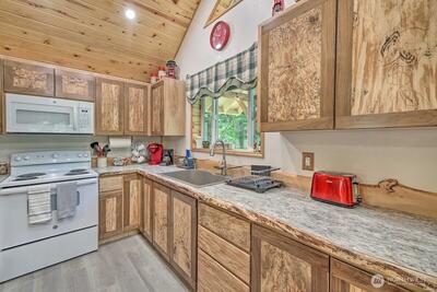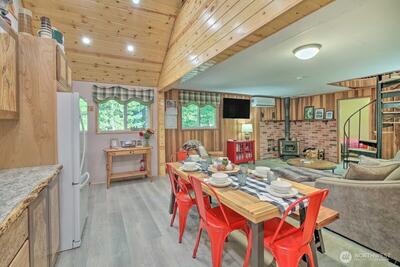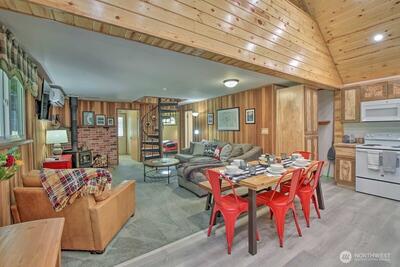 Tucked in the heart of Packwood, this charming mountain retreat offers the perfect blend of comfort, adventure, & Pacific Northwest beauty. Surrounded by towering evergreens and just minutes from year-round recreation, this home is an ideal getaway or full-time residence.Enjoy easy access to hiking, skiing at White Pass, & the stunning natural landscapes of Mount Rainier National Park. Inside, you’ll find a warm & inviting atmosphere with warm randle woods cabinetry, unique live edge countertops, & an efficient layout that maximizes space and comfort. The main level offers 2 bedrooms & full bath.A spiral staircase leads to a spacious loft with an additional bedroom. Enjoy both covered & open decks, a fire pit for evening gatherings, & year-round comfort with a ductless heat pump & woodstove. High Valley HOA amenities include pools, & a 9-hole golf course! Step outside to your private outdoor space—perfect for relaxing after a day of exploring or hosting under the stars. Whether you