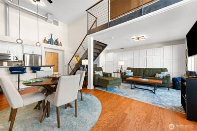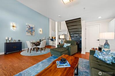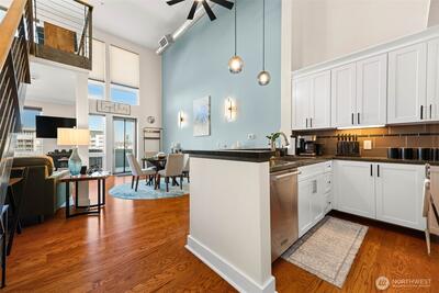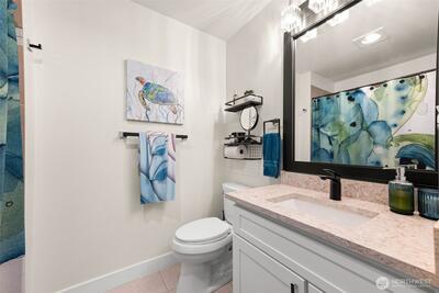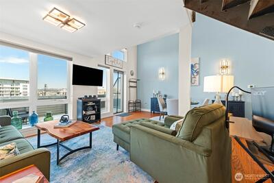 Remodeled penthouse at Thea’s Landing offering stunning waterfront and cityscape views. This 1-bed, 2-bath home features an open layout, modern finishes, fresh paint, new baseboards, updated lighting, and abundant natural light. The spacious living area and updated kitchen are ideal for everyday living or entertaining, featuring updated cabinets and hardware. Bathrooms include new countertops and fixtures. Located in Tacoma’s waterfront district near restaurants, walking paths, the Museum of Glass, and the Tacoma Art Museum. Amenities include secure entry, a fitness center, community lounge, two parking spaces, and access to yacht moorage. Enjoy low-maintenance living in a prime, walkable location with easy access to downtown and transit.
