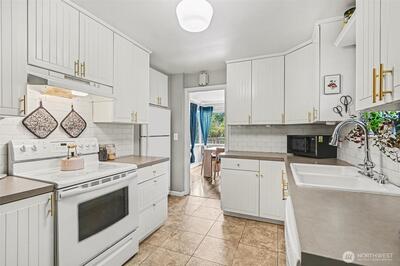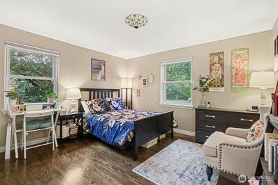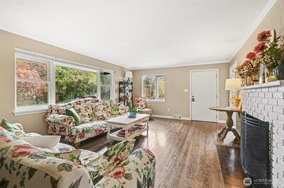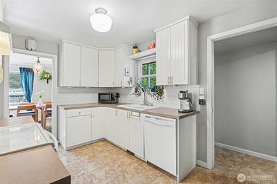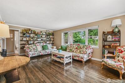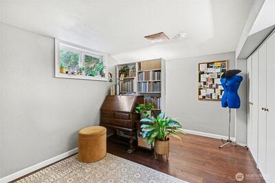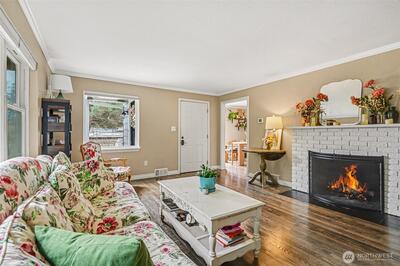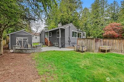 Turnkey Matthews Beach Gem with Flexible Living & Investment Potential! Beautifully updated 1940s home on an expansive lot in the highly sought-after Matthews Beach neighborhood. This move-in-ready property blends timeless charm with modern functionality—ideal for both owner-occupants and savvy investors. The inviting living room features custom bookshelves and a cozy wood-burning fireplace, while the bright dining area flows seamlessly into an updated kitchen. The main level offers two comfortable bedrooms and a generous full bath with storage. Downstairs unlocks incredible versatility with a spacious family room, third bedroom, two additional bathrooms, laundry, and a dedicated office nook or crafting area—perfect for remote work, guests, or potential rental flexibility. Outside, the fully fenced oversized lot provides rare privacy and abundant off-street parking, including space for an RV or boat. A finished detached shed adds even more value—ideal as a home gym, creative stud