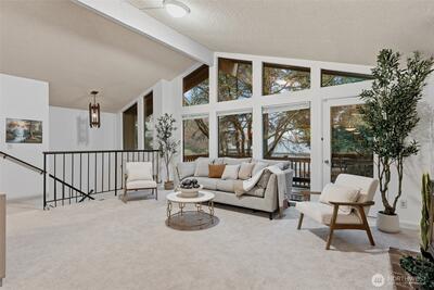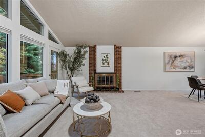 Welcome to this beautiful home on an expansive 18,000SF lot in a prime location just minutes from Microsoft and top-rated school. This stunning home showcases vaulted ceilings and an abundance of natural light throughout. The upper level features an expansive dining space that opens to a large deck—ideal for entertaining and summer gatherings. The kitchen is highlighted by a picturesque window overlooking nearly half an acre of private outdoor grounds, offering endless possibilities.The primary suite provides a spacious retreat with an en-suite bath, accompanied by two additional bedrooms and a full bath. The lower level offers incredible versatility with two additional bedrooms, a ¾ bath, and a large recreation room—perfect for a home office, fitness area, or media lounge. Ideally situated near parks, award-winning Bellevue schools, and convenient commuter access. Unbeatable proximity to Crossroads, Kelsey Creek, and parks.Opportunity knocks: Large lot with upside potential, lig