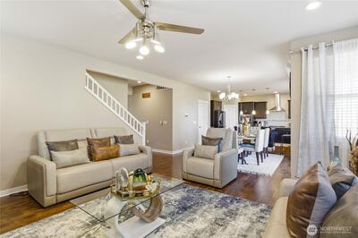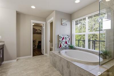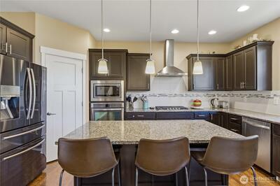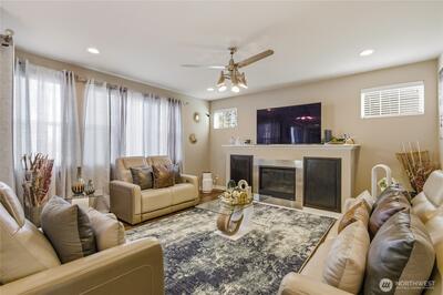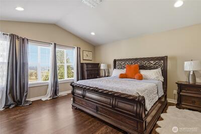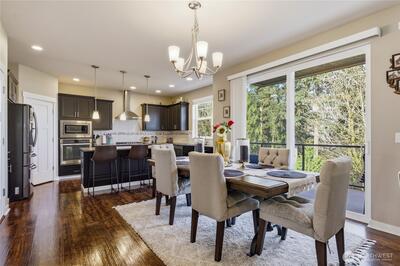 Beautiful, spacious home with mountain and territorial views overlooking the greenbelt. The open floor plan features 5 bedrooms, 4 bathrooms, and a bonus room on the lower level, plus an additional bedroom with a 3/4 bath. The cozy living room offers a gas fireplace, while the chef’s kitchen includes granite countertops, stainless steel appliances, extra cabinetry, a large pantry, and an island that opens to the family room. The elegant primary suite features a 5-piece bath and walk-in closet. Enjoy the beautifully landscaped, fully fenced backyard with a covered patio. Conveniently located with easy access to I-5, Hwy 18, and 167.