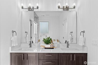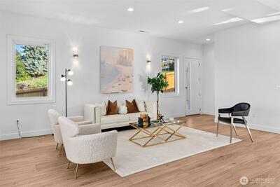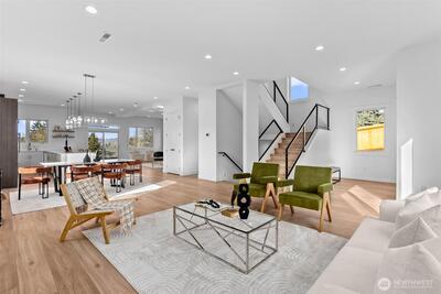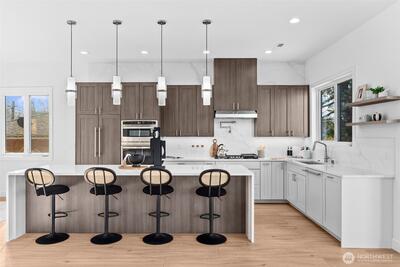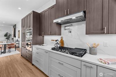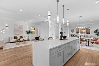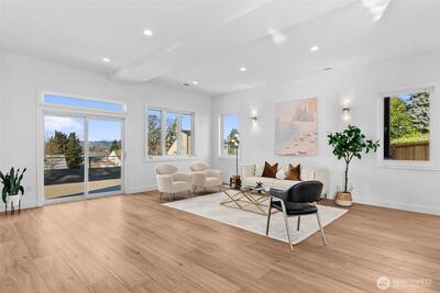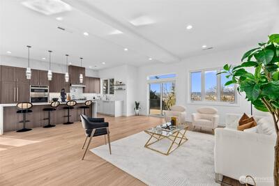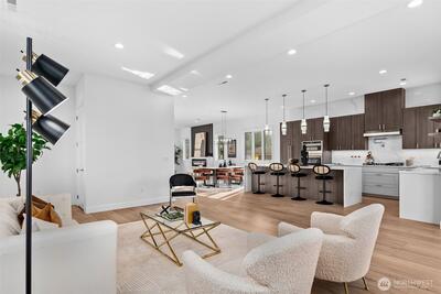 *Seller is offering a credit that may be applied toward closing costs, rate buy-down, or upgrades* Not your average new construction. This elevated home was designed to stand apart. Perched above the Kent Valley with sweeping territorial views, this contemporary home delivers premium selections and intentional design rarely found in South King County. Flooded with natural light, the open-concept layout showcases wide-plank flooring, oversized windows, and a true chef’s kitchen featuring quartz countertops, a statement island built for gathering, custom cabinetry, and built-in appliances that elevate both style and function. The seamless flow from kitchen to dining and great room extends to an expansive elevated deck, perfect for entertaining above the valley. The spa-inspired primary suite offers dual vanities, designer tile finishes, and generous walk-in storage. Three additional bedrooms provide flexibility for guests, office, or bonus space. The oversized lower-level garage isn’