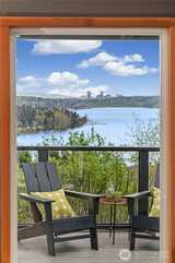 Perched above Lake Washington in Juanita, this NW contemporary home captures truly breathtaking views—stretching from downtown Bellevue and Kirkland across Lake Washington to the Seattle skyline, with Mount Rainier rising in the distance. Designed to embrace its setting, the home features vaulted ceilings, skylights and walls of windows that flood the interiors with natural light and frame the ever-changing scenery from nearly every room. The home has two sections- the main home and an ADU. The main residence offers 3 bedrooms and 2 baths (3 total bathrooms), a huge loft area with a sitting room off the primary suite with the main living areas ideal for entertaining and enjoying the view. A dedicated studio provides the perfect flex space for a home office, creative pursuits, or fitness. The ADU has 2 bedrooms with a 3/4 bath, a large kitchen and private entry. It's ideal for guests, extended living, or potential rental income. Set on an 11,394 SF lot with deeded community beac