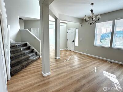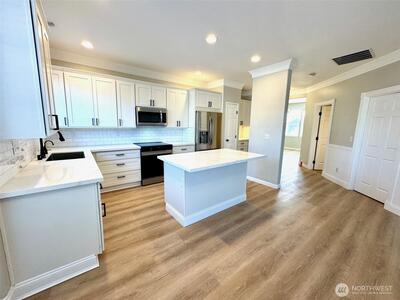 Beautiful 6 bed/3 bath home in quiet Sunrise neighborhood. Tastefully updated with new cabinetry, quartz counters, extensive millwork + wainscoting. Newer stainless appliances, undercabinet lighting, on demand hot water/Instahot at kitchen sink. New vinyl plank flooring + carpet throughout make this home warm & inviting...Perfect for entertaining! Massive backyard 20' x 24' deck is ready for your bbq! Fresh landscaping remodel with sprinkler system, new grass, plants, bark, and gravel. Fully finished 3-car garage is insulated, with new epoxy floor, plus plenty of extra outlets and tons of storage. Great location with easy access to dining/shopping/gyms. Come and check it out today!