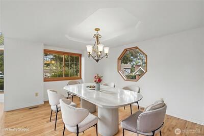 Welcome to an exceptional residence in the Ridge neighborhood, where luxury and comfort come together in perfect harmony. This beautifully appointed home offers 4 spacious bedrooms, a private den, and a versatile bonus room—providing ample space for work, relaxation, and entertaining. Rich hardwood floors flow throughout the main living areas, complemented by both formal living and dining rooms, as well as inviting casual spaces designed for everyday living. The luxurious primary suite is a true retreat, featuring a cozy fireplace and a thoughtfully updated spa-inspired bathroom. Additional highlights include a high-quality roof, a generous 3-car garage, and meticulous attention to detail throughout. Step outside to your own private backyard oasis, complete with a newer deck and firepit—ideal for year-round gatherings and peaceful evenings. Perfectly located just minutes from major freeways, Redondo, Dash Point State Park, schools, and a full range of amenities, this home offers bo