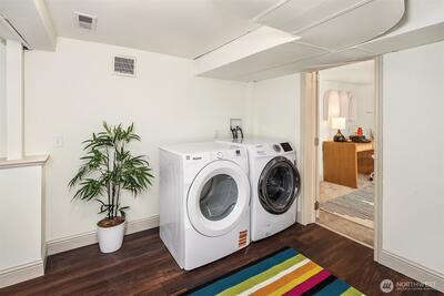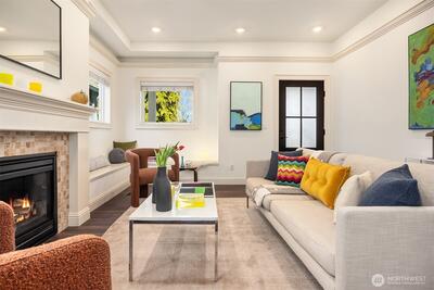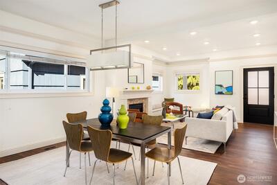 An irresistibly happy Green Lake bungalow—where the neighborhood becomes an extension of everyday living! Thoughtfully updated to blend timeless character w/ modern ease—including an updated kitchen & baths w/ radiant floor heating, a new sewer line, a 50-year roof & more. Light-filled living spaces w/ gleaming hardwoods, a gas fireplace & a cozy window seat flow effortlessly—warm, inviting & incredible scale. A covered, all-season front porch adds welcoming energy & curb appeal, while the back deck is perfect for grilling, fire-pit evenings & al fresco dining. Two off-street parking spaces w/ alley access add ease & function. Here, the lifestyle shines—just a 10-minute stroll from your doorstep to the iconic Green Lake loop. This beloved path becomes part of your daily rhythm—morning runs, golden-hour walks & an effervescent, feel-good energy Green Lake is known for & a dream for an active lifestyle! Moments to Whole Foods, favorite cafés & restaurants, w/ seamless access t
