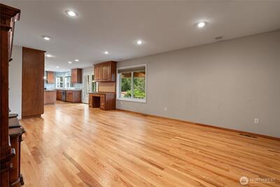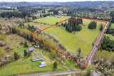 Private estate situated on approximately 18+ acres of predominantly level land with mature trees providing natural screening. Residence offers approximately 2,900+ square feet, featuring four bedrooms, den/office, two bonus rooms, and 2.5 bathrooms. Updated kitchen includes one-piece granite slab countertops, eating bar, and oak cabinetry, and opens to main living areas. Hardwood flooring. Large patio provides outdoor living space. Dedicated craft/play room offers flexible use. A a 24x48 shop, 40x48 detached three-car garage, and 12x48 covered storage with concrete floor for RV/Boat/Tractor. Property is located minutes from town with convenient access to I-5.