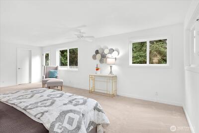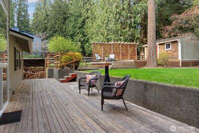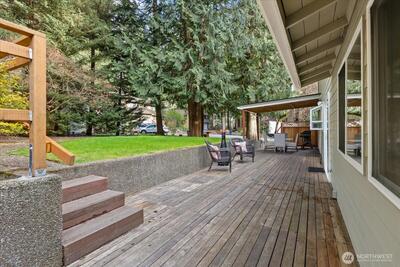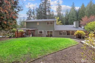 Tucked on a sun-filled corner lot across two quiet cul-de-sacs, this beautifully updated PNW home blends comfort, privacy, and effortless everyday living. Fresh paint, millwork, carpet, roof & more. Bright, inviting layout with formal living/dining, cozy fireplace & covered patio for year-round enjoyment. Quartz kitchen with stainless appliances, eating bar & sunny nook opens to terraced yard. Warm family room with 2nd fireplace + office & 1/2 bath. Upstairs - Expansive primary retreat with enclosed balcony, walk-in closet & spa-like bath. 2 additional bedrooms & full bath. Private backyard with lawn, decks, garden, fruit trees & firepit—perfect for relaxing or entertaining. Walk to parks, school, library & bus. Minutes to Cottage Lake, trails & Woodinville wineries. Northshore School District!