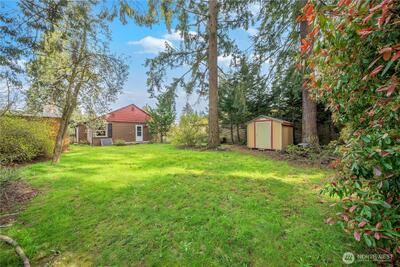 2-bedroom, 1-bath rambler The large lot of 8,100 sqft has development potential in NR2 Zoning for a new single-family home, DADU (for sure as driveway is alreadey there) or up to 4-5 Townhomes in the current city zoning. Across the street you will see a DADU conversion of the front home with larger home built in the back, buyer to verify with city. The expansive yard has two outbuildings and is ideal for entertaining, gardening, or creating your new landscaped vision. Prime location just about 1 mile to Shoreline South/148th Light Rail with direct access to Sea-Tac Airport, University of Washington, and downtown Seattle. Close to parks, shopping, dining, and quick access to Aurora Ave N and I-5. No HOA dues. Shoreline School District. Current taxes are under senior exemption so estimate new taxes to adjust to $5k-$6k.