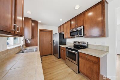 This 3-bedroom, 2.5-bath home has been thoughtfully refreshed and is truly move-in ready. Brand-new luxury vinyl plank flooring, new carpet, and fresh paint throughout give the space a clean, modern feel from the moment you walk in. Stay comfortable year-round with central air conditioning, a rare find at this price point. The spacious kitchen offers ample cabinetry and counter space, while the generous master suite features a private bath and walk-in closet. Outside, enjoy a one-car garage plus additional driveway parking, and a low-maintenance yard on a 3,182 sq ft lot. All of this in one of Sumner's most convenient locations, minutes from schools, shopping, dining, and the Sounder train.