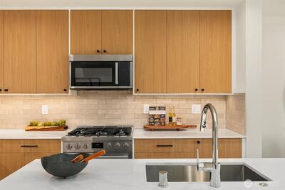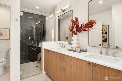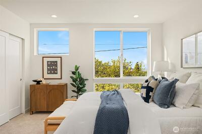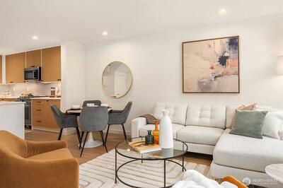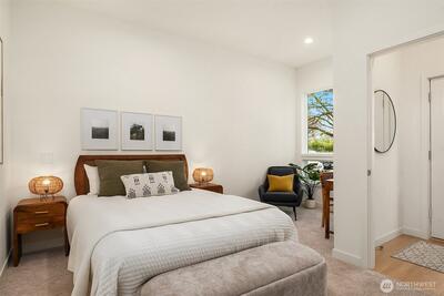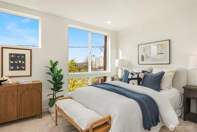 Welcome to Olive — an exceptional Ballard townhome set directly across from Gilman Park, offering the rare urban luxury of a green, open view right outside your front door. Four thoughtfully designed floors offer 3 bedrooms, a private den/office, and a fourth-floor sky lounge made for entertaining — opening to a rooftop deck with sweeping park and neighborhood views. A dedicated home office means work and life each have their proper place. The main level delivers a chef's kitchen with a generous island, Pro-Series appliances, custom cabinetry, and wide-plank flooring throughout. The third-floor primary suite is a serene retreat with a spa-inspired en-suite bath. One of just 24 curated homes by award-winning Shelter Homes, steps from the Ballard Farmers Market, restaurants, and boutiques. Urban living at its finest.