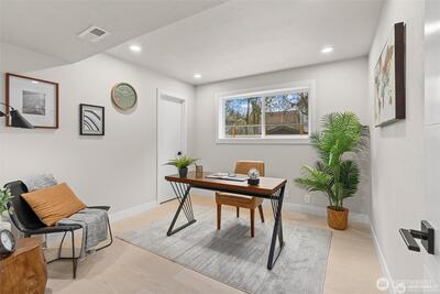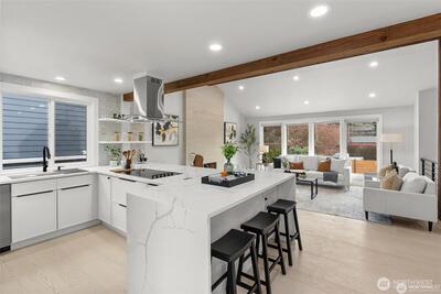 Perfectly situated in the vibrant Ravenna community, this home has been beautifully modernized for 2026. From the light-filled vaulted ceilings to the rich hardwood floors, every detail radiates quality. The heart of the home is the sleek modern kitchen, where a generous waterfall island/peninsula creates a natural gathering spot. The primary bedroom offers a quiet escape with its own en-suite bath and walk-in closet. This home is as functional as it is beautiful, featuring a brand-new furnace and central A/C system for total seasonal comfort. Discover a vast lower-level suite—the perfect canvas for a sprawling lounge area, a cozy movie theater, or an airy home gym. Both the front and back yards are fully fenced, offering a private, secure space for play or gardening, anchored by a brand-new entertaining deck. Located blocks from top-rated schools, Dahl Playfield, and University Village, this turnkey home offers a premium lifestyle in a walker’s paradise.