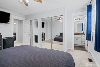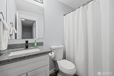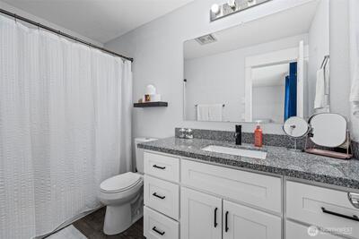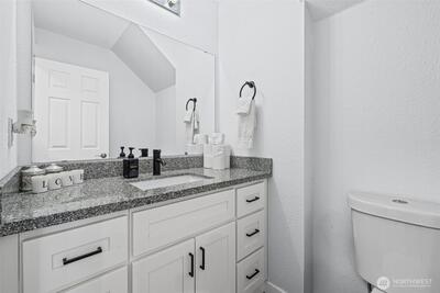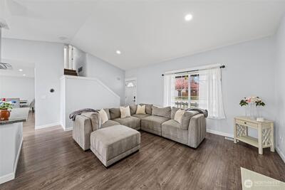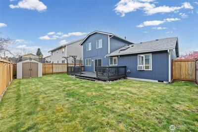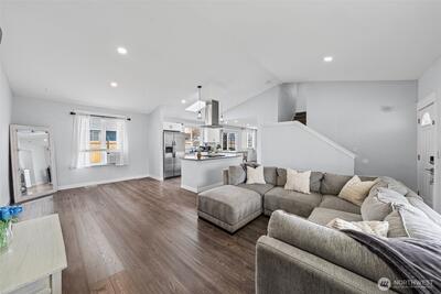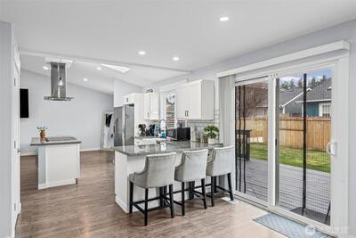 Welcome home to this beautifully updated and truly move-in ready gem in Spanaway! Featuring 3 bedrooms, 2.5 bathrooms, and approximately 1,500 square feet, this home offers the perfect blend of modern upgrades and comfortable living. Step inside to an open-concept layout with vaulted ceilings and abundant natural light, enhanced by skylights that create a bright and airy feel throughout. The fully remodeled kitchen is a standout, complete with granite countertops, stainless steel appliances, a center island, stylish backsplash, and a charming farmhouse sink—ideal for both everyday living and entertaining. Recent updates include a newer roof, furnace, hot water tank, cabinetry, trim, doors, flooring, and fresh interior and exterior paint, offering peace of mind and modern appeal. Upstairs, the spacious primary suite features a private ensuite bathroom and walk-in closet. Additional highlights include built-in vacuum, updated lighting, and ceiling fans throughout. Enjoy the f