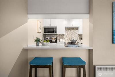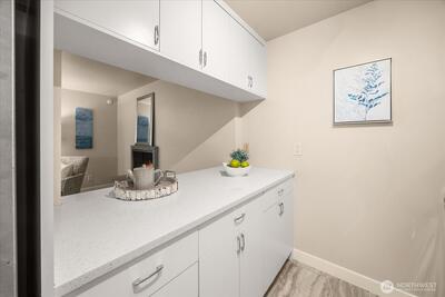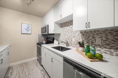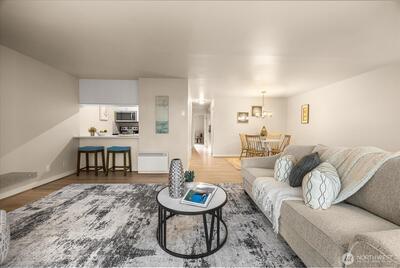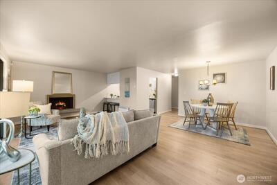 Nestled between Laurelhurst and Windermere is a remodeled two-bedroom, one-bathroom home including an open floor plan and large windows that boast tons of natural light! This home features a remodeled kitchen with stainless steel appliances, quartz countertops, plenty of cabinet space, and a center eating bar. Luxury vinyl plank flooring stretches through the common living areas, meeting the private sunroom with a tree-line view. The Windermere Vista community is within a short distance to the Burke Gilman trail, U-Village, restaurants and parks. Generous storage within the home including an additional storage in the common laundry room. The home includes a wood burning fireplace, 1 off street parking space, and a stunning updated bathroom.