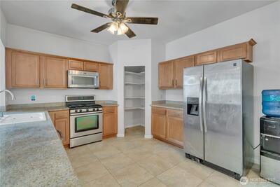 Opportunity knocks in this beautiful home. 4 bedrooms 2.5 baths almost 2,000 Sq feet with ample room to grow. Delight yourself in all the possibilities this home has to offer from the expansive floor plan that features a huge 4th bedroom on the main level or use as an extra large rec room/Family room option. A gorgeous open kitchen with granite Counters and stainless appliances, opens into the huge living room and dining space. The back patio is covered and is a perfect setting for your Summer BBQ's. Upstairs you will be pleased with the spacious bedrooms and large primary suite featuring additional storage. With a little elbow grease, fresh coat of paint and love this home at this price will treat you well for years to come and you will be very happy with the sweat equity you've built. Hard to find homes this spacious at this price. Located in a very desirable neighborhood and situated for your private enjoyment. 4 bedrooms at this price is hard to find! Call today for your tour and