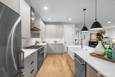 Live large in this luxuriously curated gem home in the heart of Richmond Beach! This masterpiece of modern design features an open-concept chef’s kitchen, beautiful quartz countertops, premium appliances, walk-in panty with bonus storage, elevated ceilings, and two generous living rooms —perfect for everyday living and effortless entertaining! Enjoy the spacious bedrooms with generous closet space, including the grand primary-suite with a 5-piece custom designed bathroom, overhead rain shower, and huge walk-in closet! Easy-living and peaceful relaxation from the comfort of the covered outdoor patio and a fully private low-maintenance yard—perfect for BBQ and outdoor enjoyment! Located just minutes away from restaurants, shopping, parks, amenities, Richmond Beach and the desirable Shoreline school district. Easily commute from this lovely and convenient community or comfortably work from home! Capture this rare opportunity to own a true beauty that captures the essence of Northwe