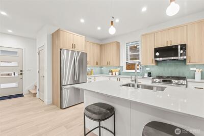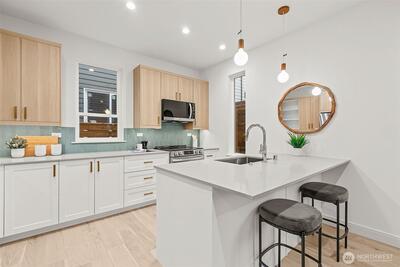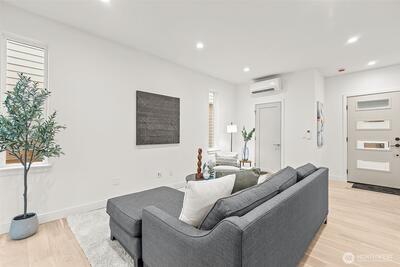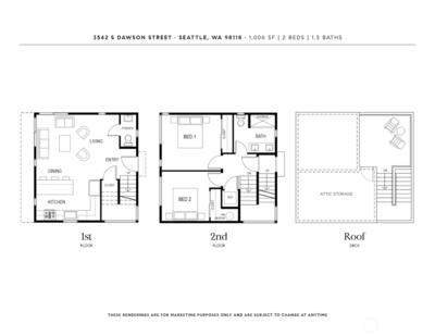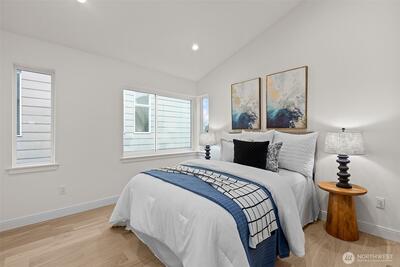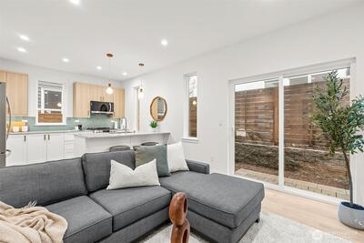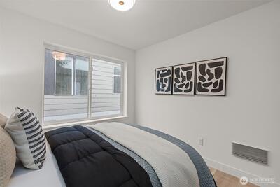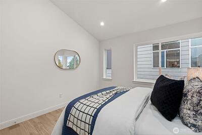 Alchemy Design Build brings design-forward cottage living to Columbia City—smart, stylish, and refreshingly intentional. Eight standalone homes deliver the feel of a single-family residence without the drag of high-maintenance ownership or rigid HOA oversight. Open main level connects a streamlined kitchen, dining, and living areas built for actual use—weeknight dinners, easy hosting, or a quiet reset. Engineered hardwoods run throughout—no carpet, no LVP, no apologies. Upstairs, two bedrooms offer calm separation with a polished bath featuring dual sinks, heated floors, and thoughtful storage. Outdoor space is private, fenced, and ready for pets, play, or a future shed. Select homes have roof decks capturing Lake Washington, Mt. Baker, and Cascade views, putting you front row for Blue Angels season. Set on a quiet residential street in coveted Columbia City, a vibrant & diverse neighborhood with independent shops & restaurants where farmer’s markets & festivals cement the tigh