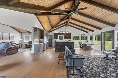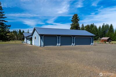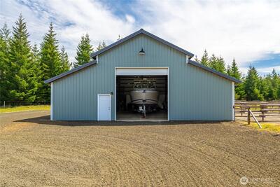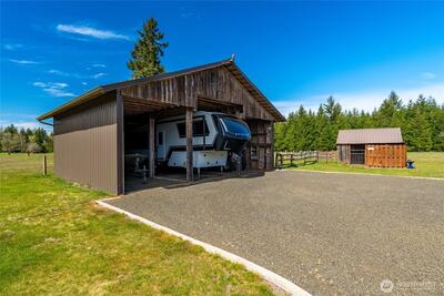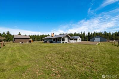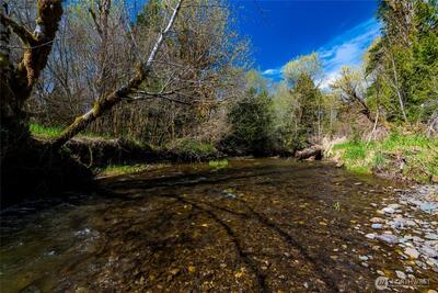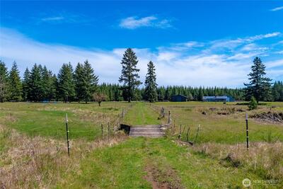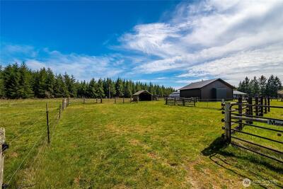 40-acre farm at the base of the Olympic Mountains, set up for livestock and equestrian use. Fully fenced and cross-fenced into 7 pastures with approximately 1,000 feet of frontage along Dry Bed Creek. The home is positioned well off the road with a gated entrance, offering privacy and a functional layout for a working property. The 2,112 sq ft home includes 3 bedrooms and 2.25 baths and has been fully renovated with high end finishes. Features include a metal roof, heat pump, stainless steel appliances, fiber optic internet, hot tub, and an oversized 3-car attached garage. Improvements are well thought out and designed for everyday use. Circular driveway with fresh gravel and ample parking. RV Parking with full hookups. A large equipment shed provides space for tractors, trailers and other farm equipment, and a dog run is already in place. The newly constructed 48'x48' shop/barn includes workshop space, 3 finished stalls with room for a fourth or a tack room, and gravel runs. A 14'x14'
