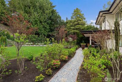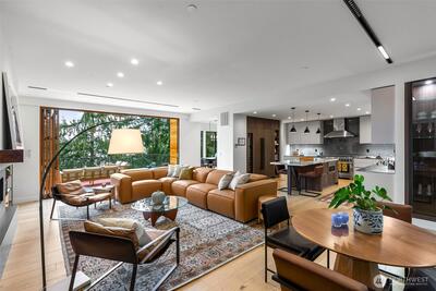Pristinely and thoughtfully elevated beyond its original design, this gorgeous NW Contemporary strikes a rare balance; modern in form, yet warm, livable, and effortlessly inviting. Expansive yet intentional, the home unfolds through a series of beautifully scaled spaces designed for both connection and retreat. Six ensuite bedrooms offer the ultimate flexibility, suitable for guests or dedicated work-from-home environments, while multiple indoor and outdoor gathering areas create a seamless rhythm for everyday living and entertaining alike. Walls of glass and folding doors dissolve the boundary between inside and out, opening to a level, sun-filled, lush and rarely found at this scale backyard, as well as a view balcony. Covered terraces and open-air spaces invite year-round enjoyment, from quiet mornings to vibrant evenings.The current owner has taken an already exceptional build and refined it further; enhanced landscape design, and integrated AV systems. Tucked on a quiet dead-end s