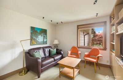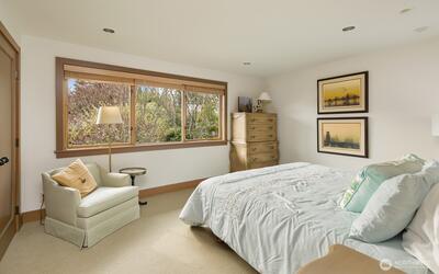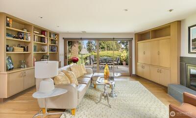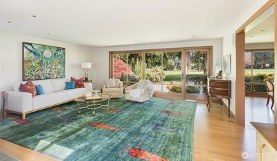 Distinctive Rambler on the Sand Point Country Club fairway was fully renovated in 2001, with planning and design by David Olson Architects. The quality found in this home is rare and the floor plan exceptional, incorporating a Living, Dining, and Family Room arranged enfilade, promoting natural sightlines and a gentle flow for ease of gathering. The rooms where you’ll live and entertain command the golf-course vistas, seamlessly extending your sense of space and privacy. Sleeping rooms inhabit the North wing, with two Bedrooms sharing a hall Bath, and the Primary with a walk-in-closet and en-suite, presenting dual sinks, artisan tile, and a towel warmer. The Powder and Den, also a possible guest area, are apart from the hub, recessed down a hall off the Entry. Outdoors, mature plantings intertwine through the courtyard and wind around back, where a bluestone patio invites you to stay a while. Irrigation for easy care! Fine finishes, including European fixtures in two Baths, extensive