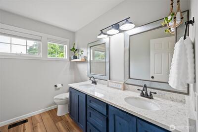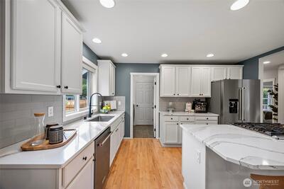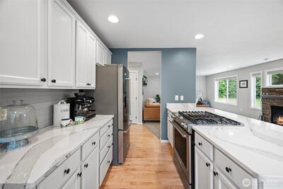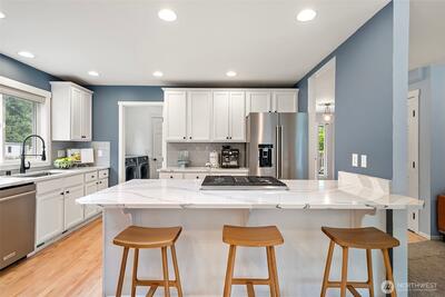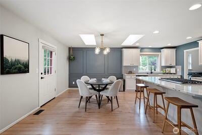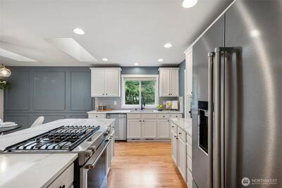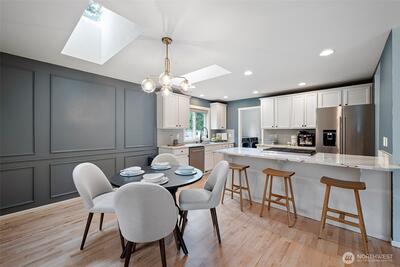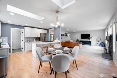 Tucked in close to charming downtown Gig Harbor, this beautifully updated home sits on a hard to find flat .61 acre lot—perfect for gardening, play, or future expansion. Enjoy the ease of main-level living with a spacious primary suite. Natural light pours in through skylights that brighten every corner of the main floor. The kitchen shines with sleek Cambria quartz countertops, new appliances, and modern finishes. A tankless water heater and A/C ensures comfort and efficiency. This is the ideal blend of location, lifestyle, and livability—just minutes to shops, dining, and the waterfront. Don’t miss this opportunity!